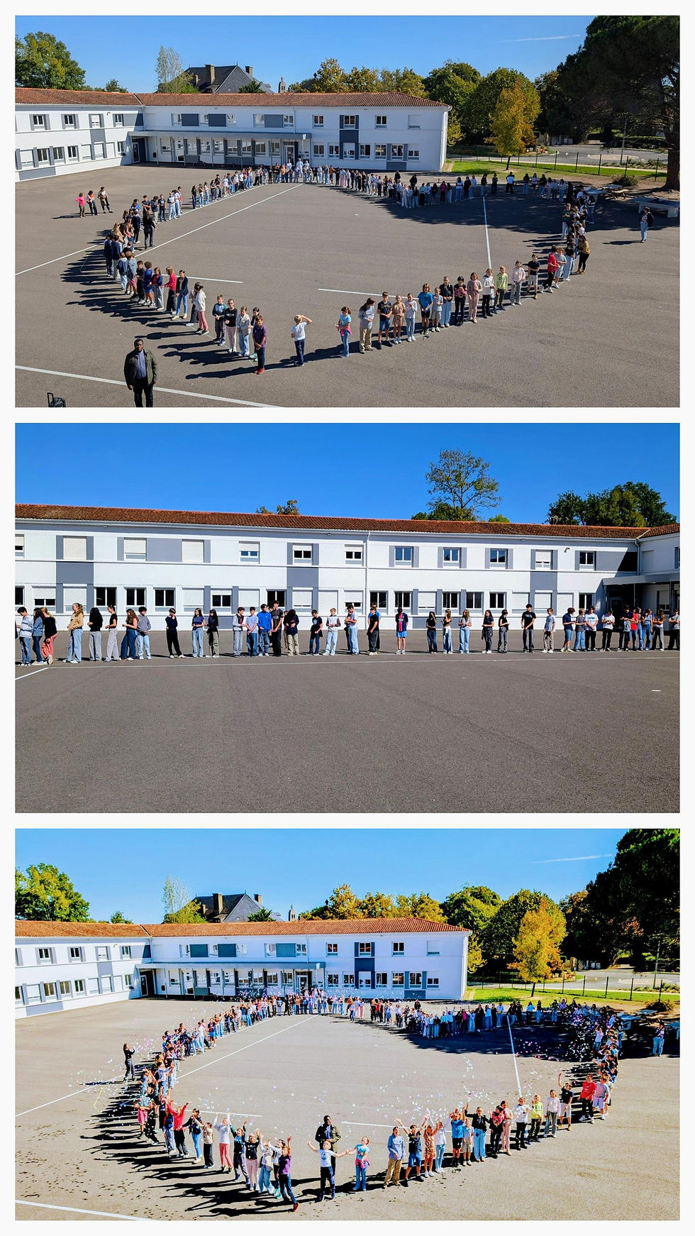 Jeudi 2 Octobre , tous les collégiens ont été rassemblés dans la cour pour fêter Sainte Thérèse de Lisieux. Après avoir écouté Mme de Chaptal, ils ont lancé des confettis en forme de cœur. Ce fut un moment très joyeux .